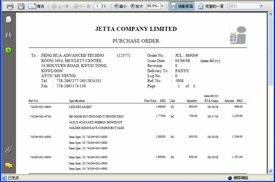 可按下 ( PDF圖示 ) 按鈕來查看整張訂單,在查看PDF格式的訂單時,
